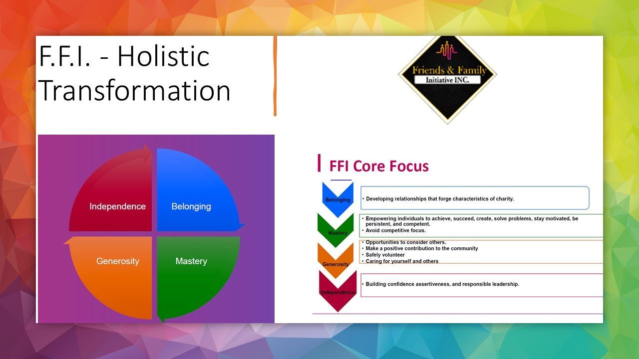 FFI is intentional about improving the experiences of individuals and families within communities advantaged and disadvantaged. We bring to the Pittsburgh and Greater Pittsburgh communities, holistic transformation. With a focus on four core areas, modeled after The Circle of Courage philosophy. New programming is designed to equip, build, and support our friends and family's growth and development. Check out what we have coming up for our youth and adults this fall.